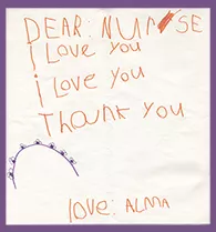 Sharing her gratitude for the Christian Science nurses’ care, Alma wrote the thank-you note shown here.