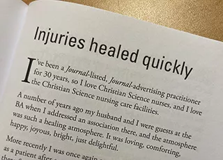 I’ve been a Journal-listed, Journal-advertising practitioner for 30 years, so I love Christian Science nurses, and I love the Christian Science nursing care facilities.